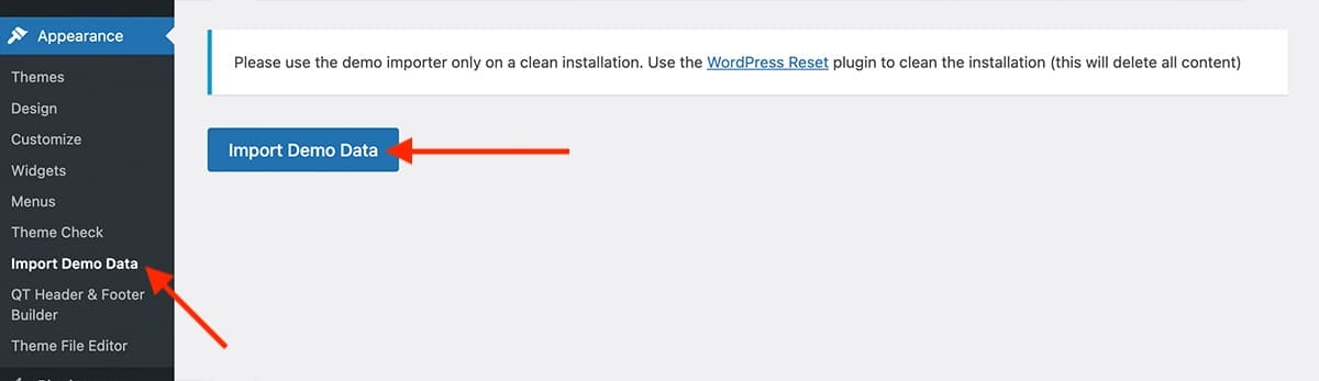 - Go to Appearance → Import Demo Data