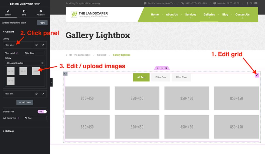 Below is a screenshot how to edit the gallery widget and where to add your images: